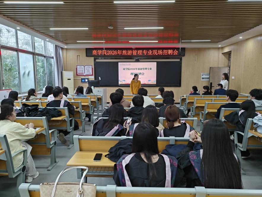 2026 年 4 月 15 日下午,商学院旅游管理专业 2026 届毕业生专场招聘会顺利举办。襄阳市盛世唐城景区、襄阳民发世纪酒店、黄家湾景区、湖北康华国际旅行社、湖北桔子国际旅行社、湖北世纪百...