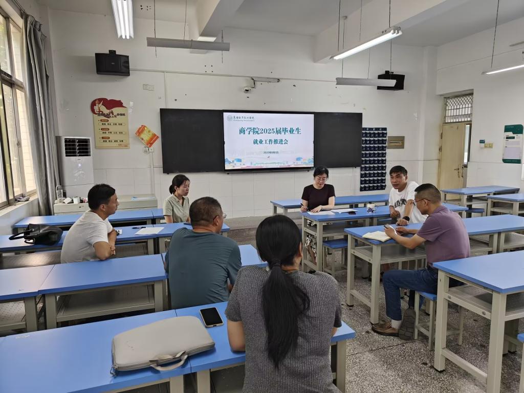 8月5日上午,商学院在笃学楼二楼召开2025届毕业生就业工作推进会。商学院党总支书记王建宏、副院长唐卫东、就业办全体工作人员、毕业班班主任参会。