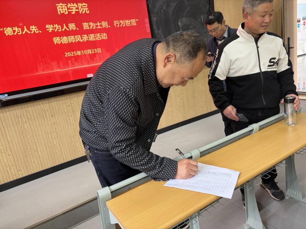 10月23日下午14:30,商学院组织集体学习学校《关于开展“德为人先,学为人师、言为士则、行为示范”师德师风承诺活动的通知》文件精神。