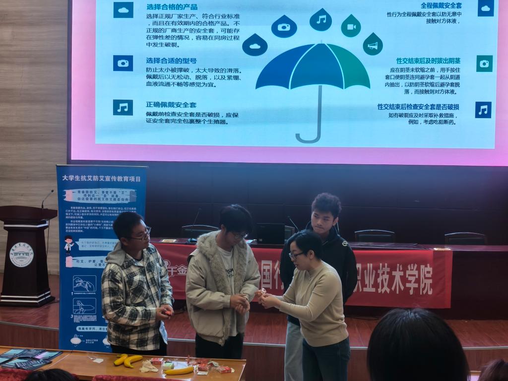 本次活动形式多样、内容丰富。除专家系统讲解艾滋病的基础知识与防护要点外,还特别设置了互动教学环节,刘琼教授现场演示了安全套的正确使用方法,并组织防艾知识竞答。活动现场气氛热烈,同学们在参与中深化了对防艾知识的理解。讲座结束后,学院还向新生发放了防艾宣传手册及实用宣传笔,将健康理念融入日常学习生活。