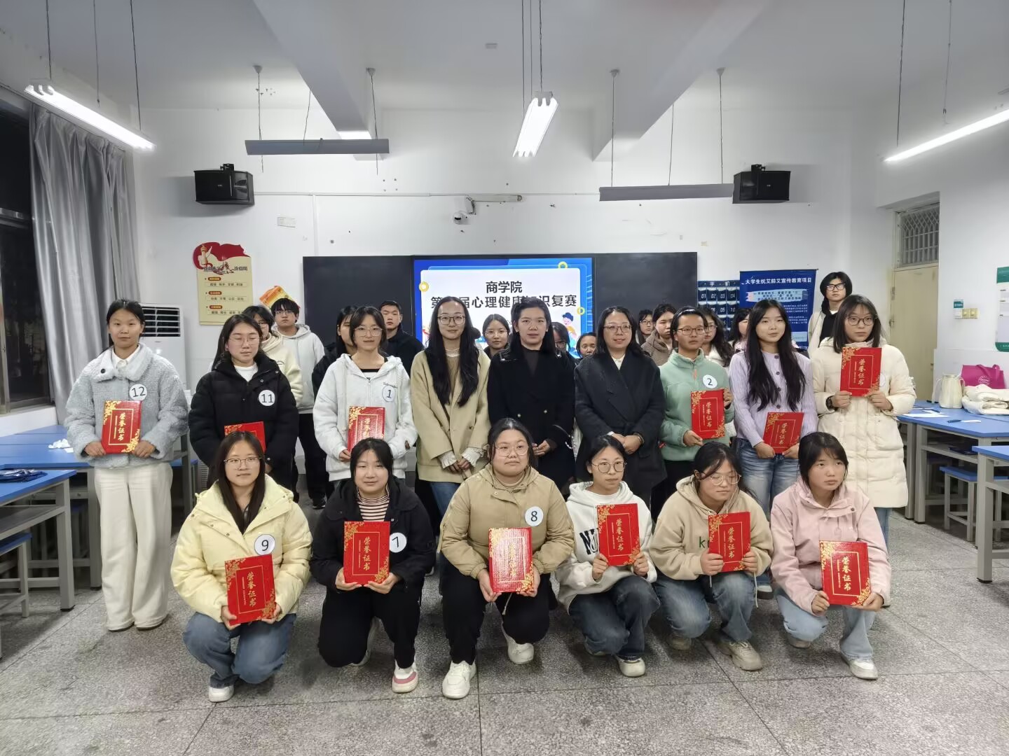 为引导大学生关注自身心理健康,增强心理调试能力,11月27日晚,商学院生活部联合青春同伴社,在笃学楼207教室共同举办主题为“知心践行·启智明心”心理健康知识竞赛。商学院副院长梁光源、学工科长房莹、大学生心理健康教育中心张竞月老师、学工科仝宝珍参加本次活动, 各班心理委员、社团成员观看了这场智慧与心灵的碰撞。