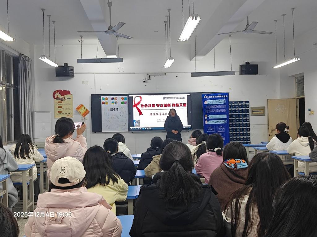 为提升青年学生的防艾意识,12月4日晚,商学院青春同伴社在笃学楼207教室开展了以“社会共治,守正创新,终结艾滋”为主题的世界艾滋病日宣传活动。本次活动由社团指导老师仝宝珍及全体成员共同参与。