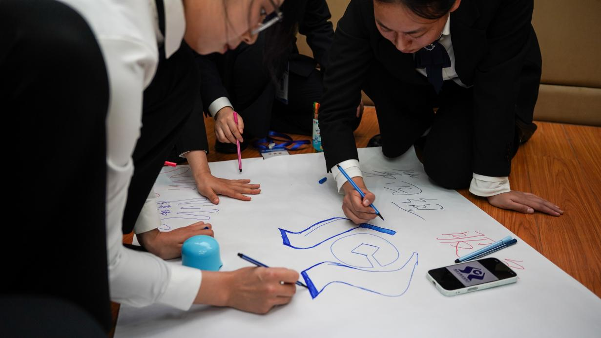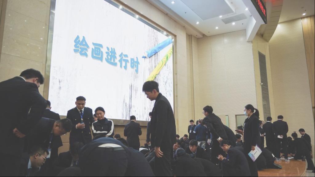 当 8 幅作品依次拼接,一幅寓意深刻、气势恢宏的 “价值观长城” 完整呈现,将湖北农商行的核心价值理念具象化、可视化,深深烙印在每一位新员工心中。